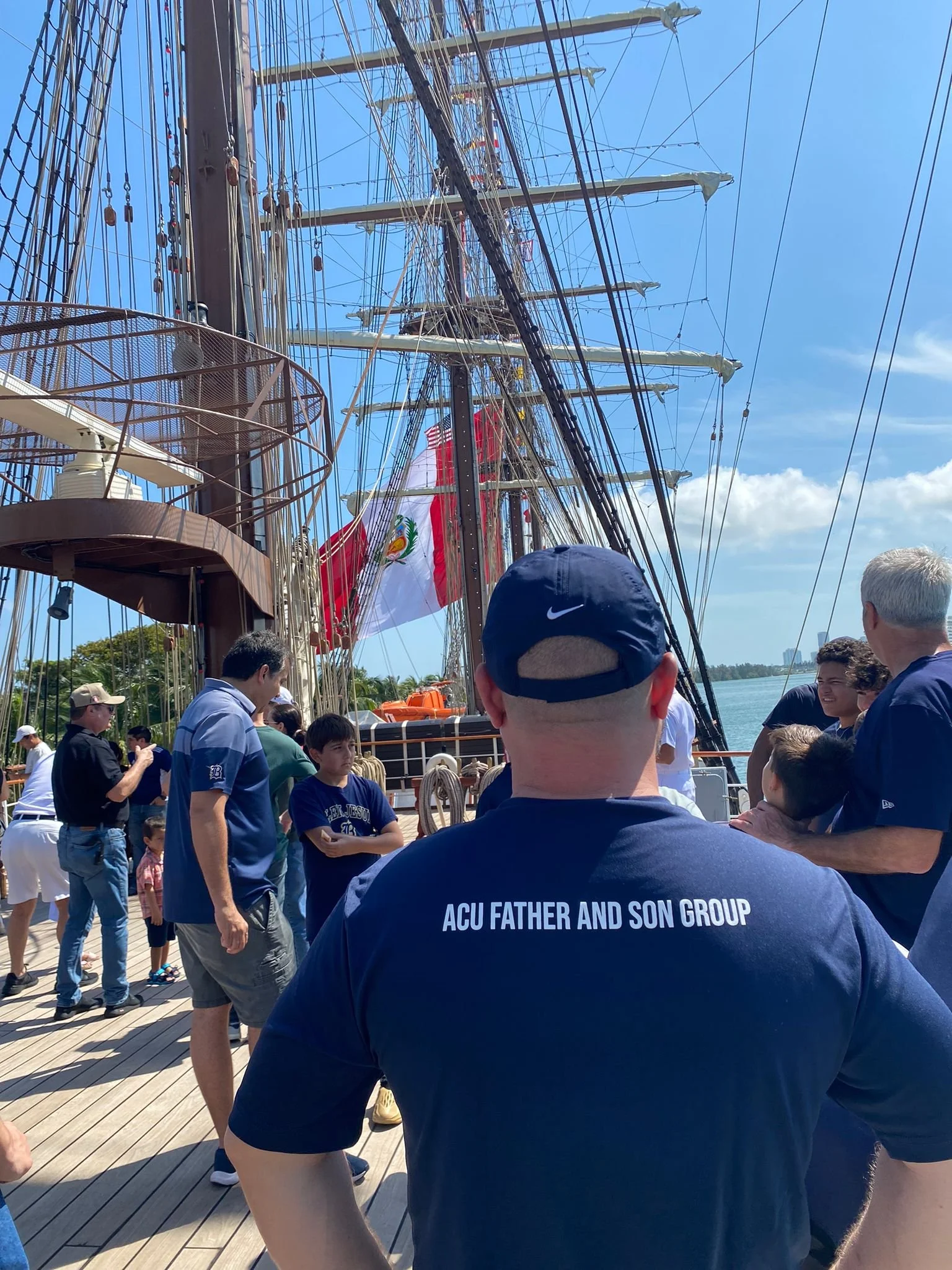 One of the members of the group, Nicola Stasi, served on a similar ship when he was a cadet in the Venezuelan Navy. Nicola shared with the group memories of life at sea. During their visit, the group was hosted by a dedicated cadet who provided a comprehensive tour and insightful commentary. The BAP Unión is currently undertaking a world tour, and its recent stop in Miami presented a rare opportunity for the ACU group to delve into the life of a cadet aboard a sailing ship.