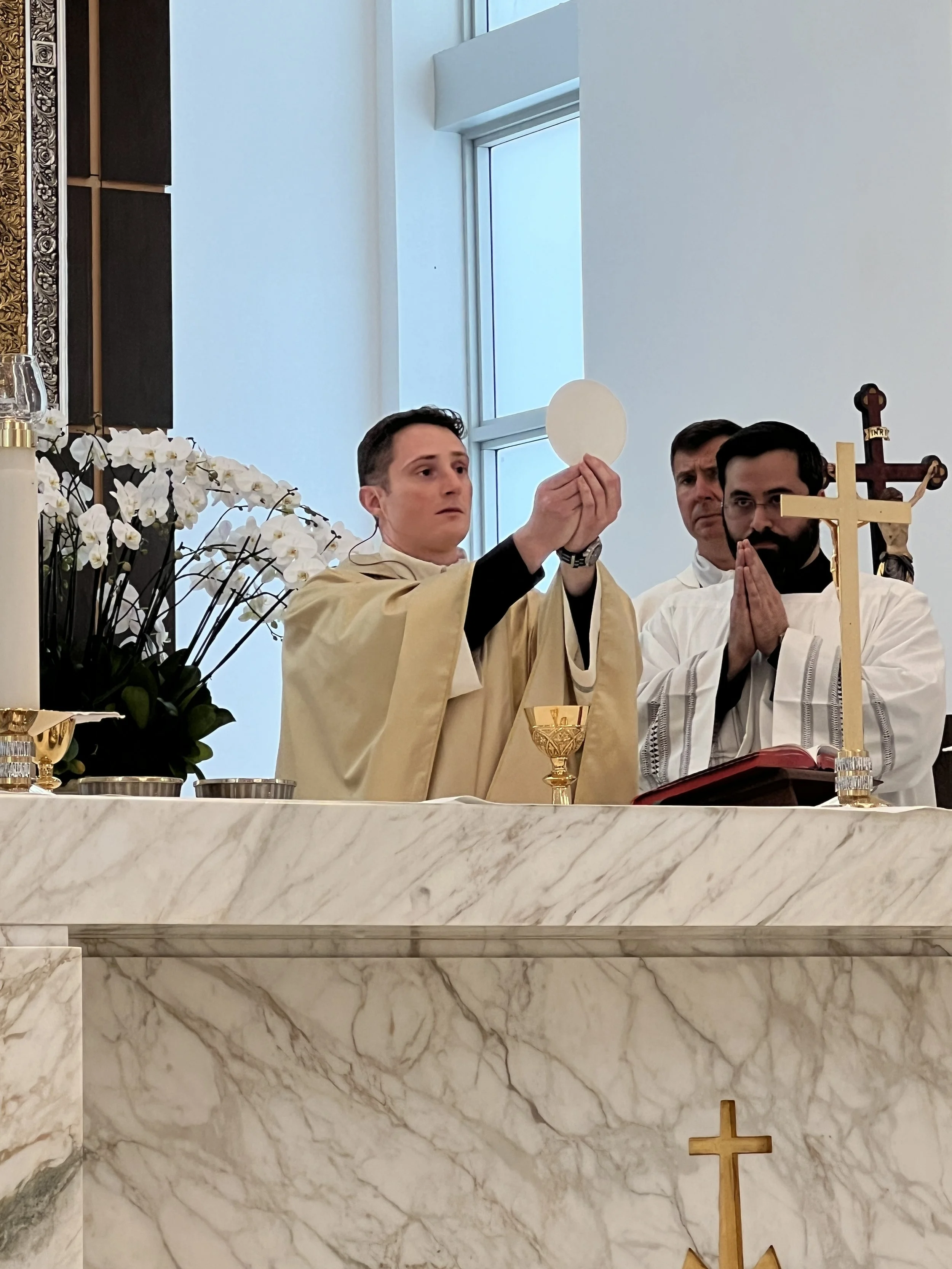Father John is a New York native who graduated from the University of Miami with a degree in biomedical engineering. He was an active member of UCatholic, the University of Miami's Campus Ministry program, and credits his priestly vocation in part to his involvement in campus ministry. In the summer of 2020, he did the 30-day Spiritual Exercises at the University of Mary in Bismarck, North Dakota.