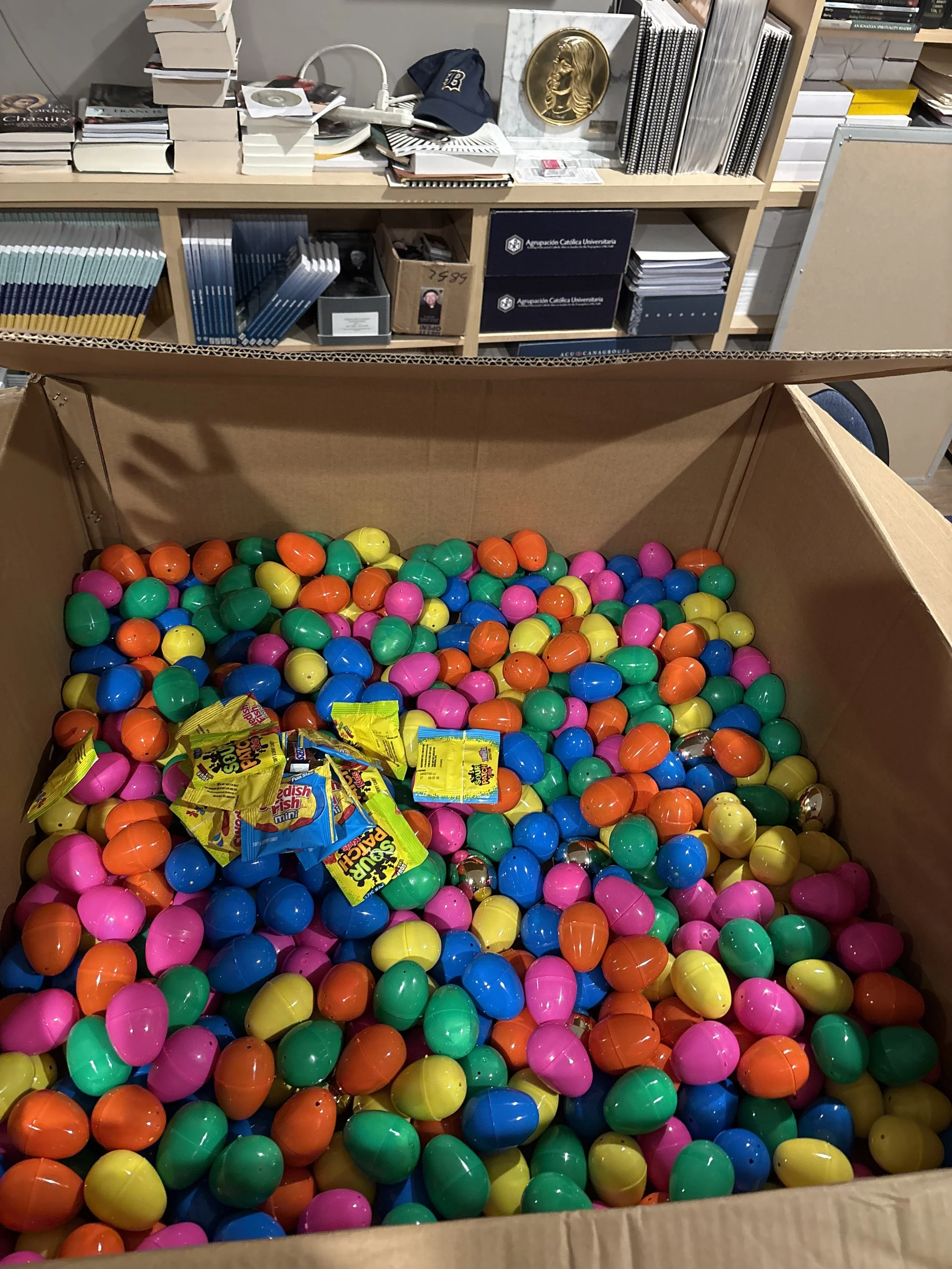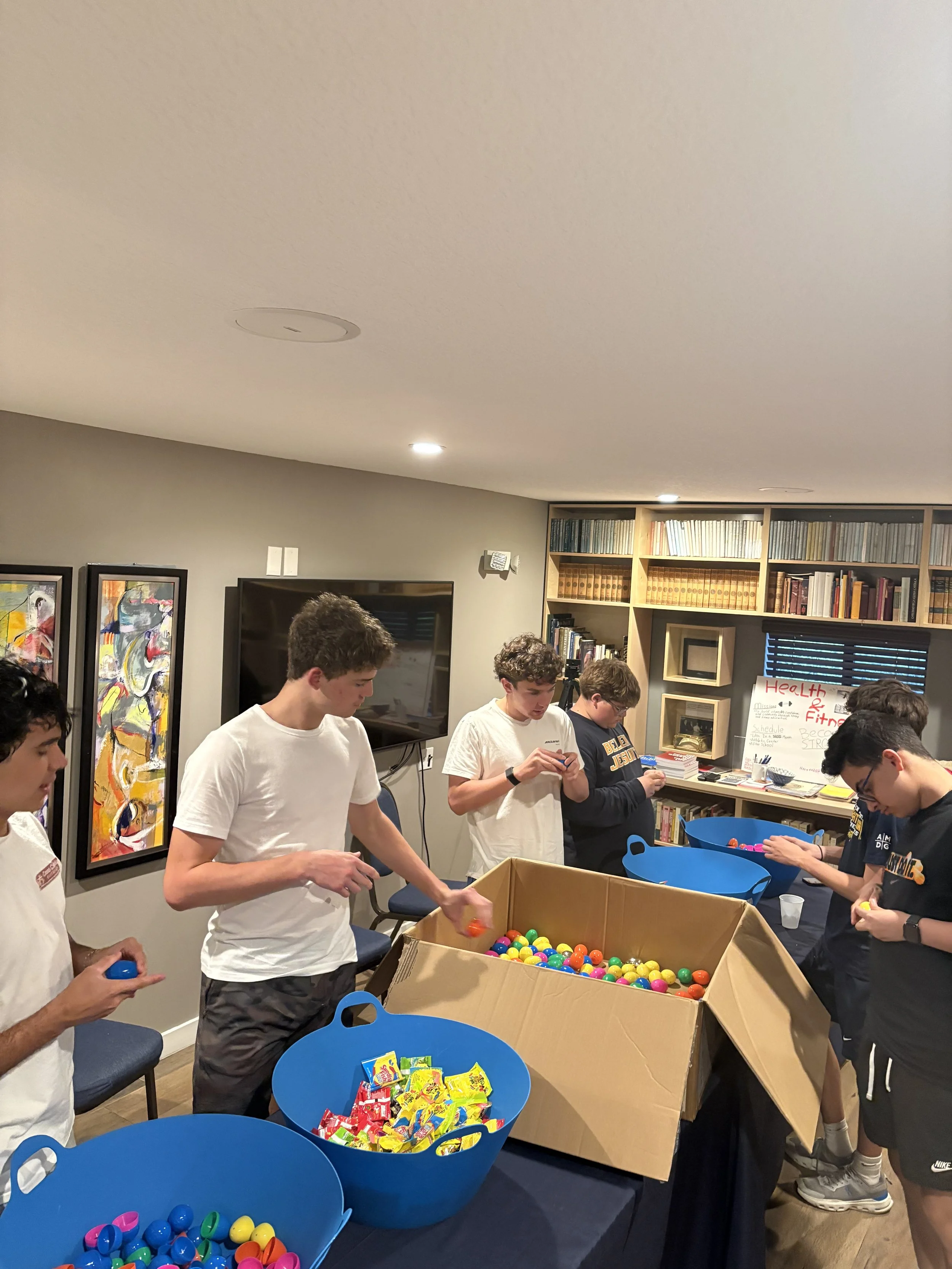 This past Monday, March 30, 2026, the members of the Esto Vir Group held the sixth general meeting of the Spring 2026 semester. The Group continued their Lenten formation and discussed the resurrection and the Shroud of Turin. The presentation was led by Senior Noah Scott, who was accepted to Florida State University. As part of the meeting, the students filled 500 Easter eggs for the children at the ACU Easter Mass on Sunday. The students also engaged in a reflective activity where they wrote down one thing they learned about themselves over Lent and how they can use that to grow in their relationship with the Lord. At the end of the night, the students made a bonfire. The moderators for the group are Congregants Jay Velasco and Erik Vieira.