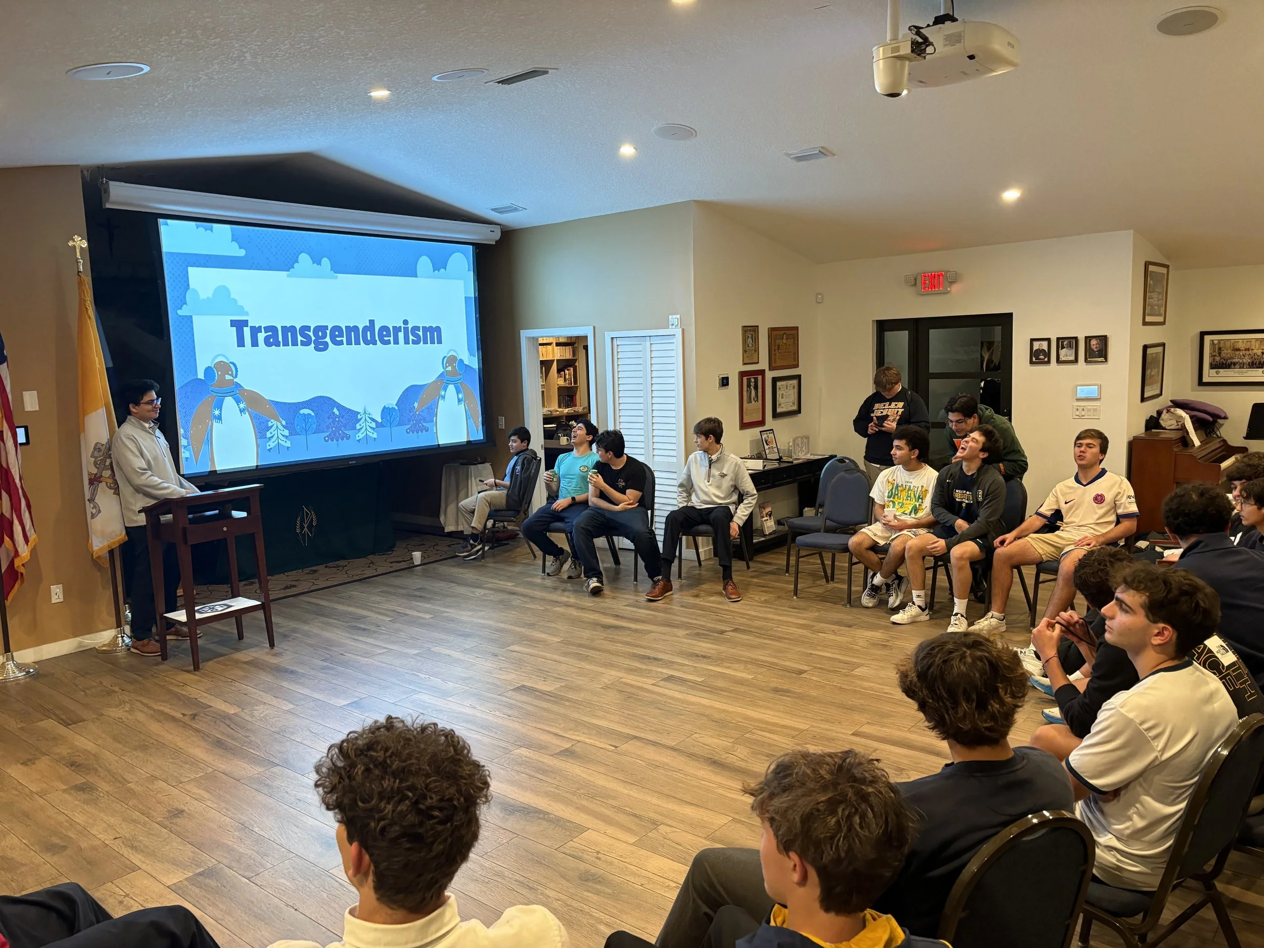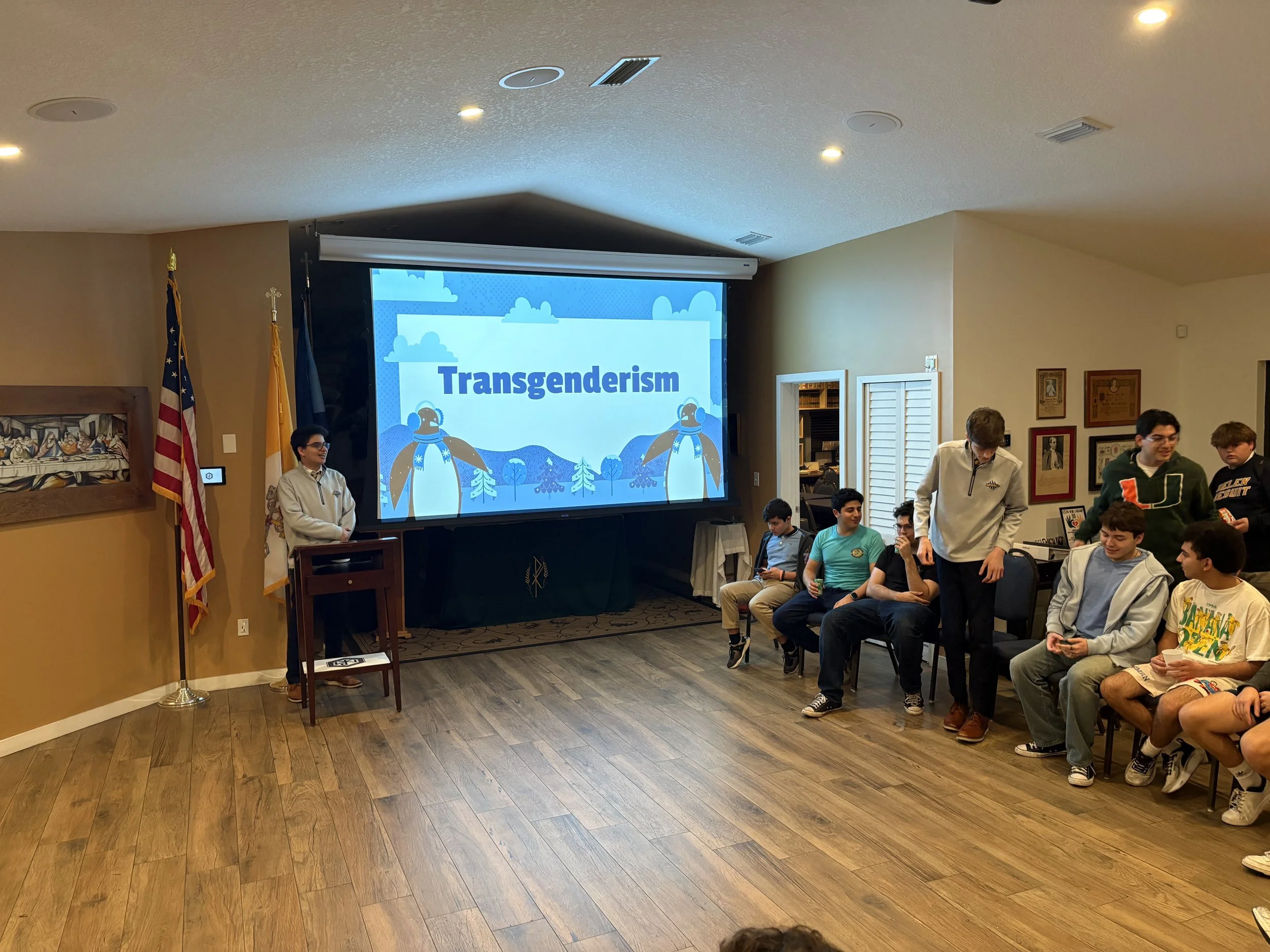 This past Wednesday, January 28, 2026, the members of the Esto Vir Group held the second general meeting of the Spring 2026 semester. The presentation was led by Fernando Minaya, a senior at Belen and president of the Esto Vir Group. He reviewed the Catholic Church's response to transgender ideology focusing on the philosophical and theological tenents of God's creation of humans as male and female with distinct characteristics noting no other genders exist, the substantial unity of body and soul making it impossible to be born in the wrong body, genetic disorders leading to intersex anomalies, and pastoral approaches focused on upholding human dignity. The moderators for the group are Congregants Jay Velasco and Erik Vieira.