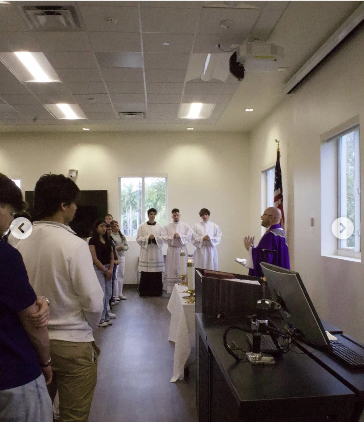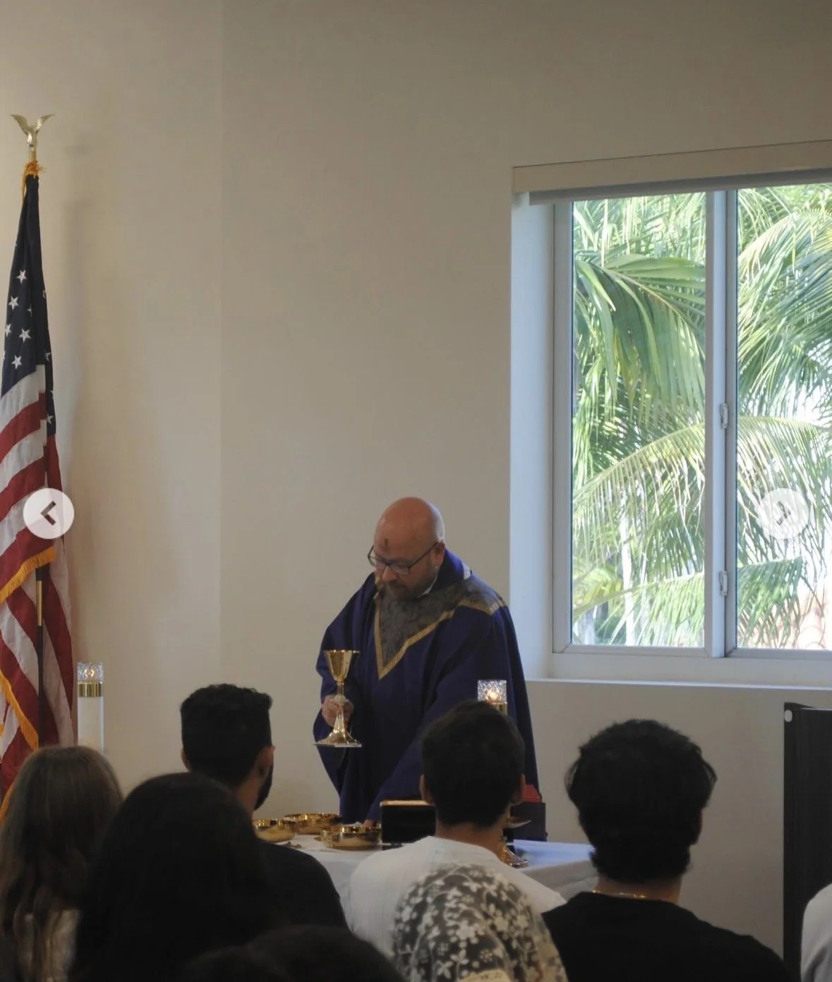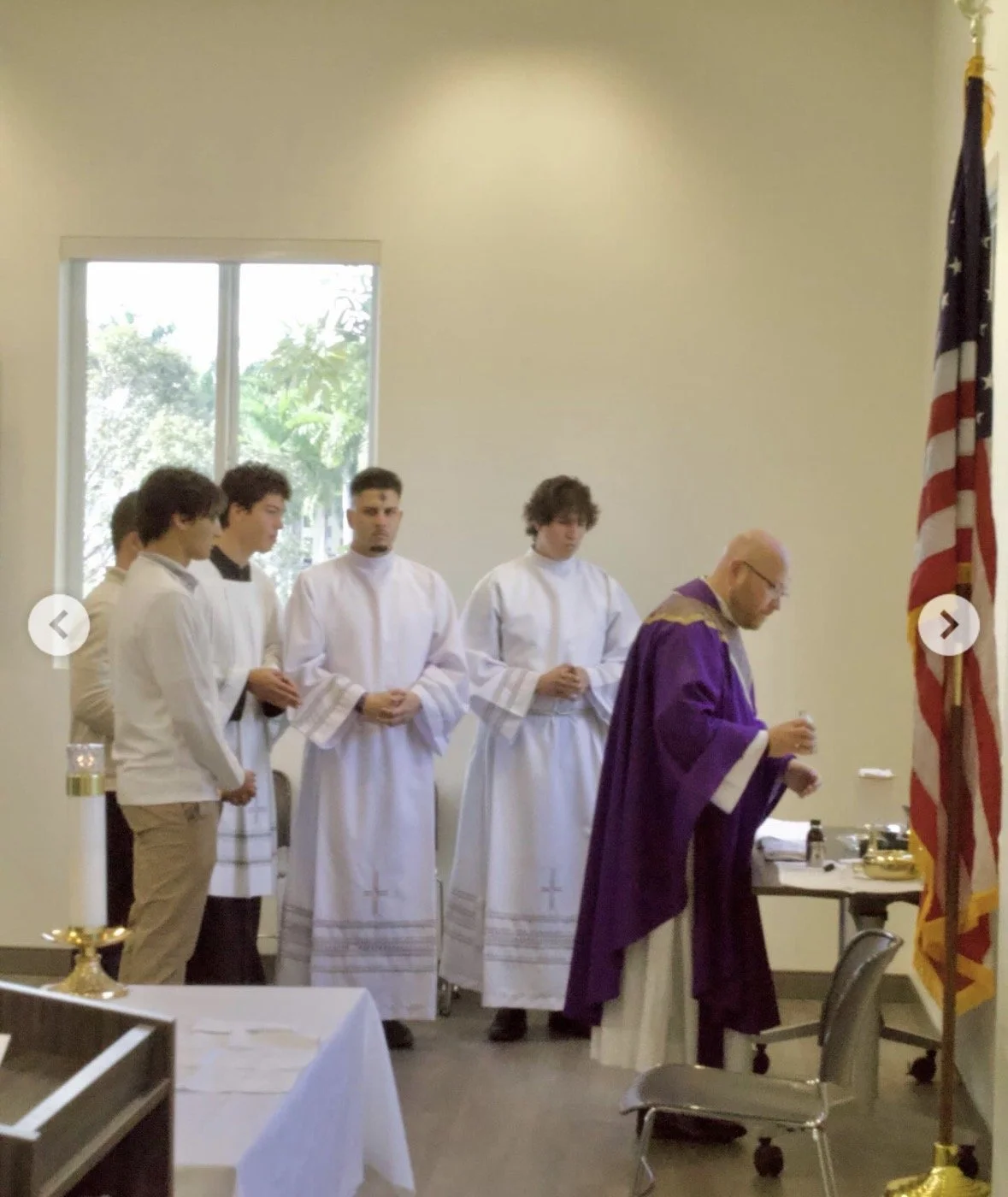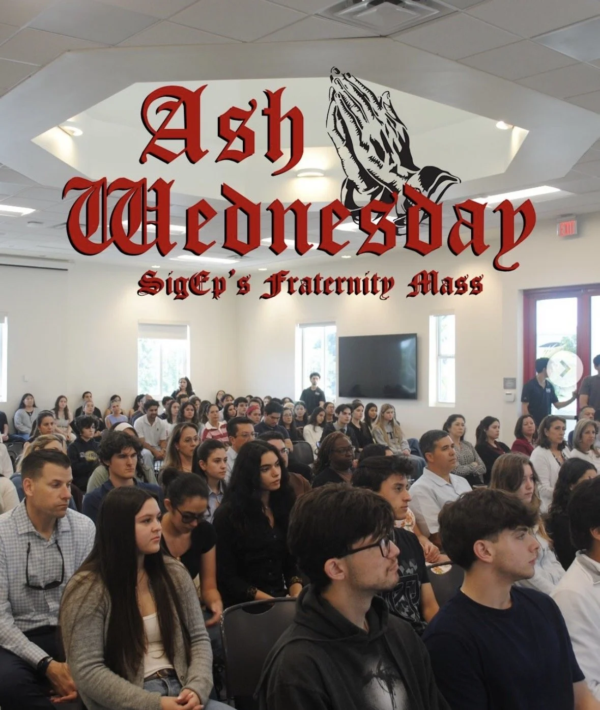 La semana pasada, para el Miércoles de Ceniza, el aspirante Alejandro Madrigal, del aspirante de FIU, colaboró estrechamente con el P. Luis Pavón, capellán de la pastoral católica del campus de FIU, para celebrar la Misa del Miércoles de Ceniza en la Comunidad de Aprendizaje Sigma Phi Epsilon de FIU, lo que marcó la primera vez que se celebró una misa católica en esas instalaciones. Alejandro Madrigal aparece en la foto distribuyendo cenizas a uno de los estudiantes que asistieron a la misa. El recinto se llenó por completo para la misa. Alejandro es el presidente del capítulo de FIU para Sigma Phi Epsilon. Puedes ver más fotos aquí: https://www.instagram.com/p/DU_S9I6jrTe/