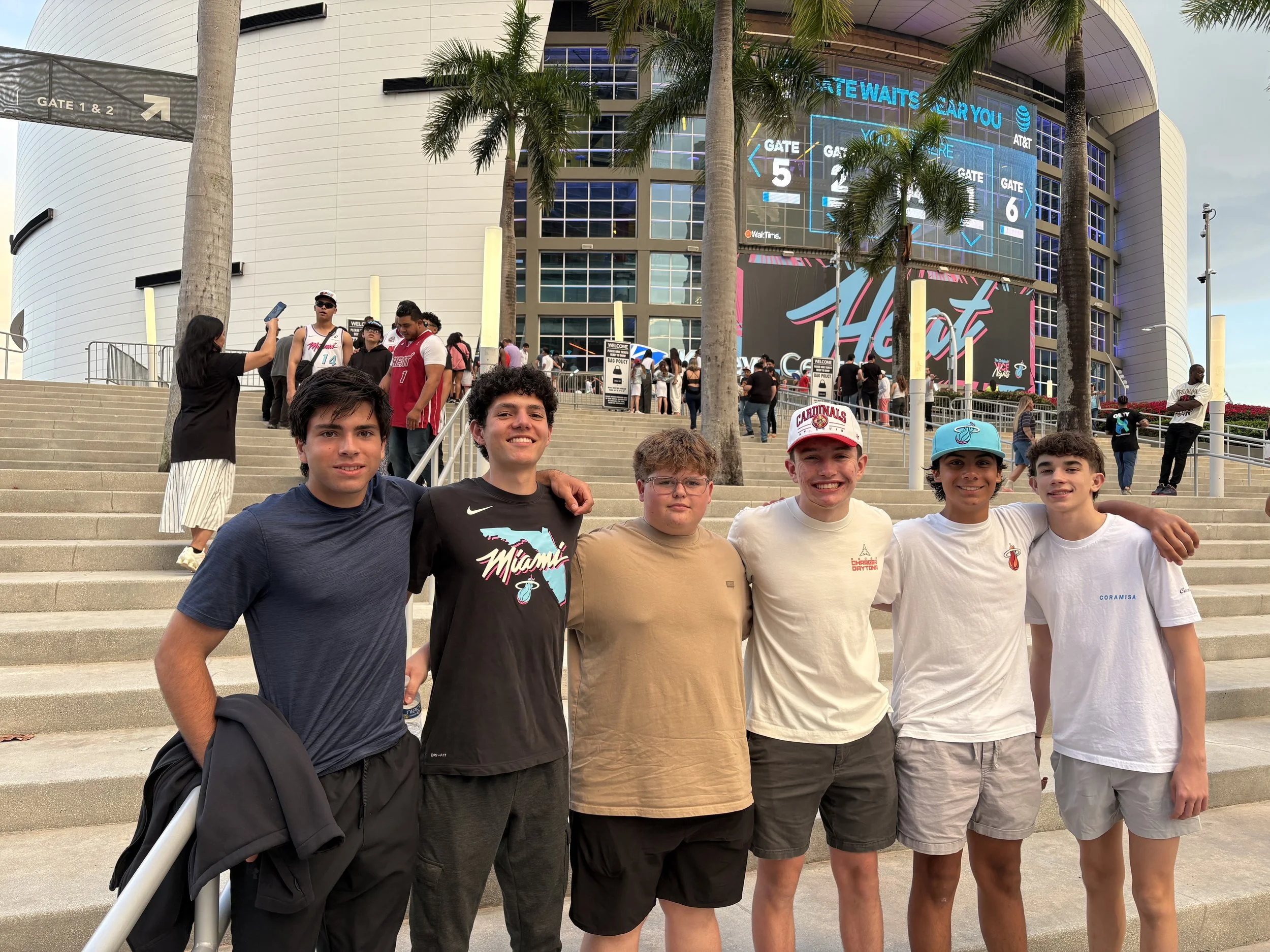This past Saturday night, March 14, 2026, members of the Esto Vir Group attended a Miami Heat basketball game at the Kaseya Center in Miami. The Heat trailed for most of the game and lost to the Orlando Magic despite a fourth-quarter rally. The Group was accompanied by Congregante Erik Vieira. This was the second Miami Heat outing this academic year for the Esto Vir Group. Before the game, the group met up for pizza in downtown Miami.