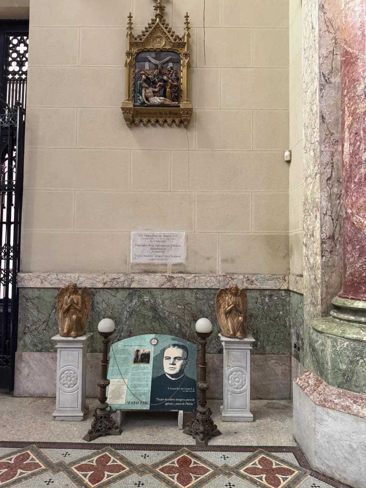 La Iglesia de Reina was the birthplace of the ACU, and the final resting place of Fr. Felipe Rey de Castro, S.J., the founder of the ACU. Our Director, while serving as pastor of Reina, assisted the ACU in locating the remains of Fr. Rey de Castro, SJ, in February 2023 at the La Necrópolis de Cristóbal Colón. The remains were permanently interred at La Iglesia de Reina, in January 2024 in a prominent location at the base of the sanctuary.