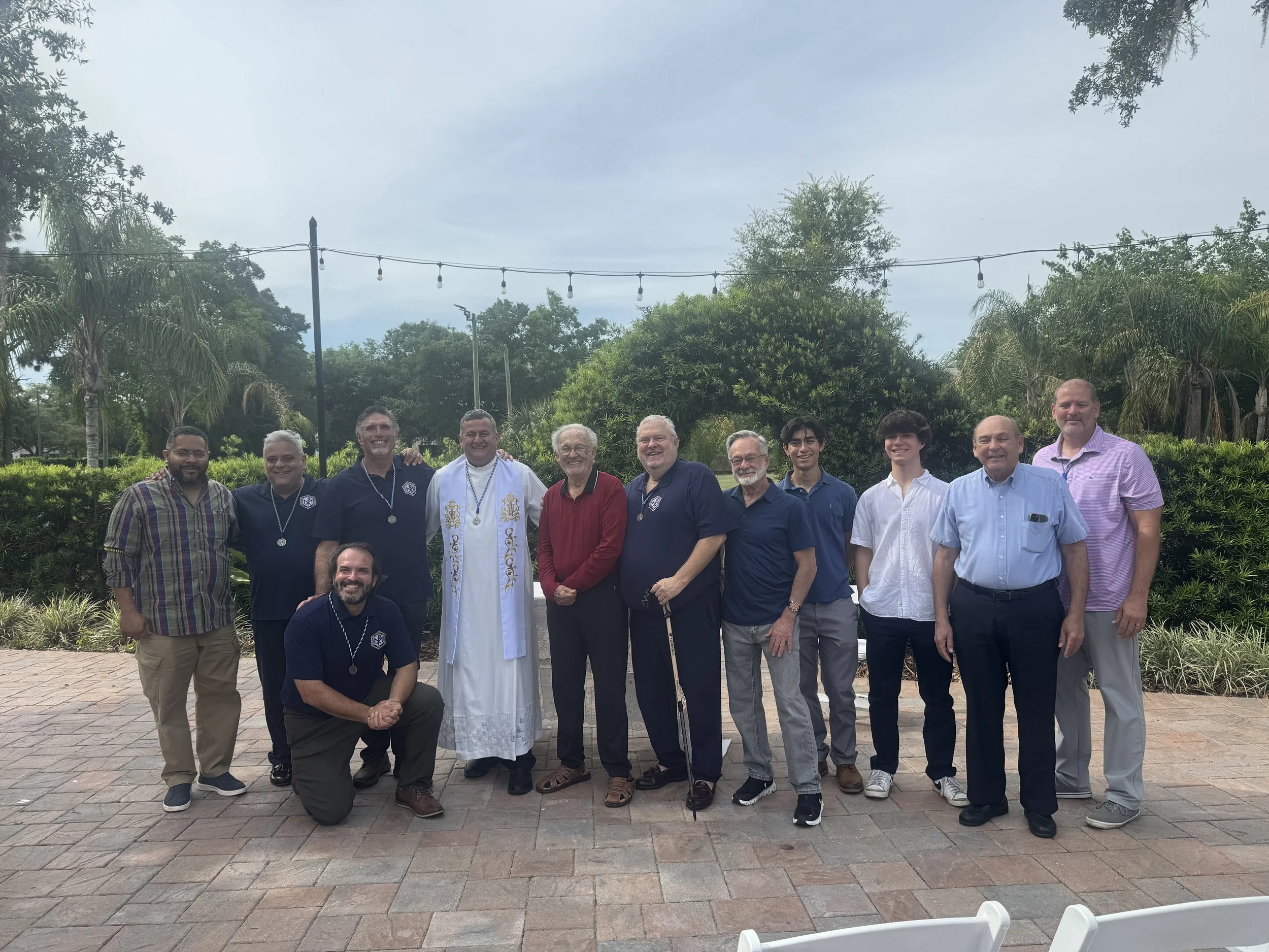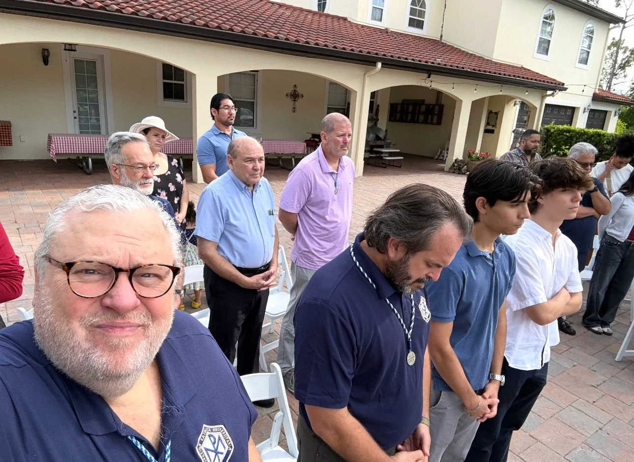 El pasado fin de semana, nuestro Director, el P. Jorge Luis Rojas, S.J., fue acompañado por nuestro Presidente, el Dr. Manny Antón, y nuestro Vicepresidente, Mariano Pérez, a Orlando para reunirse con los Agrupados y familias, marcando la primera visita pastoral al grupo restaurado de la ACU de Orlando en décadas. Los Agrupados Gene Rodríguez y Rafael (Wifo) de Cárdenas han estado liderando el resurgimiento de la ACU en Orlando y han realizado varias reuniones de instrucción y círculos de estudio en los últimos meses. Parte de la visita pastoral incluyó una reunión con el expresidente de la ACU en Orlando, César "Monono" Baro, quien tiene 95 años. El pase de Congregante de Monono fue el 8 de diciembre de 1950. El P. Rojas estaba particularmente emocionado por la visita porque Monono es uno de los pocos congregantes que pasó tiempo con el Fundador de la ACU, el P. Felipe Rey de Castro, S.J. Monono compartió numerosas historias sobre el P. Rey con el P. Rojas. Después de un intercambio de historias e historia, el P. Rojas administró la Unción de los Enfermos y la Sagrada Comunión. Esa noche, el grupo cenó con varios feligreses de Orlando y los jóvenes del grupo de formación, entre los que se encontraban dos recién graduados de Belén que formaron parte del Grupo Esto Vir en Miami. El domingo por la mañana se celebró una misa y un almuerzo en casa de Gene Rodríguez. El padre Rojas ofició la misa, a la que asistieron los feligreses originales de Orlando de diversas generaciones, sus familias y los jóvenes que participan en el grupo de formación. Les pedimos que tengan presente este resurgimiento en sus oraciones. Que Nuestro Señor siga inspirando a los Agrupados de Orlando para que cumplan la misión y que los jóvenes en formación perseveren con la intercesión de Nuestra Santísima Madre.