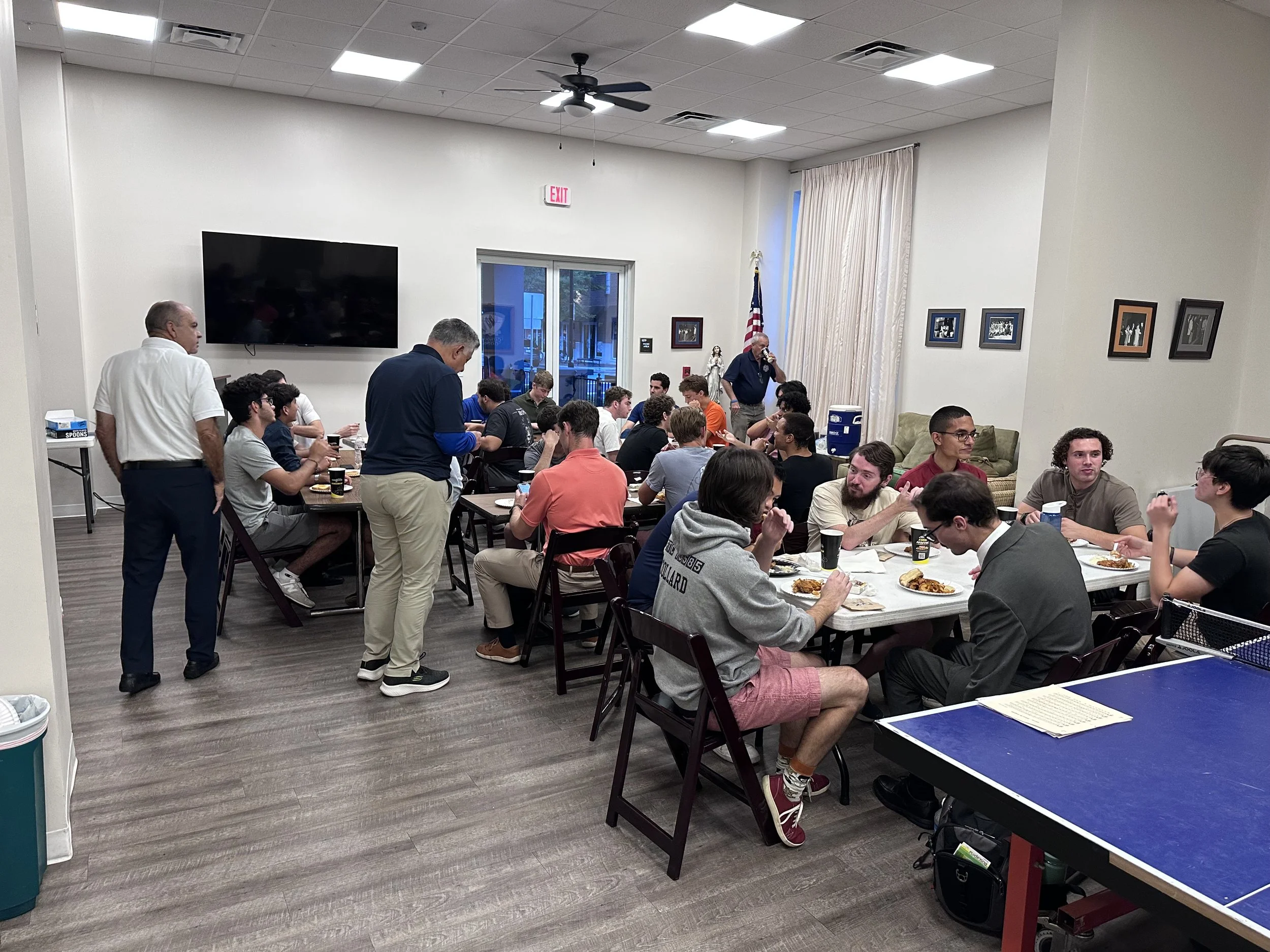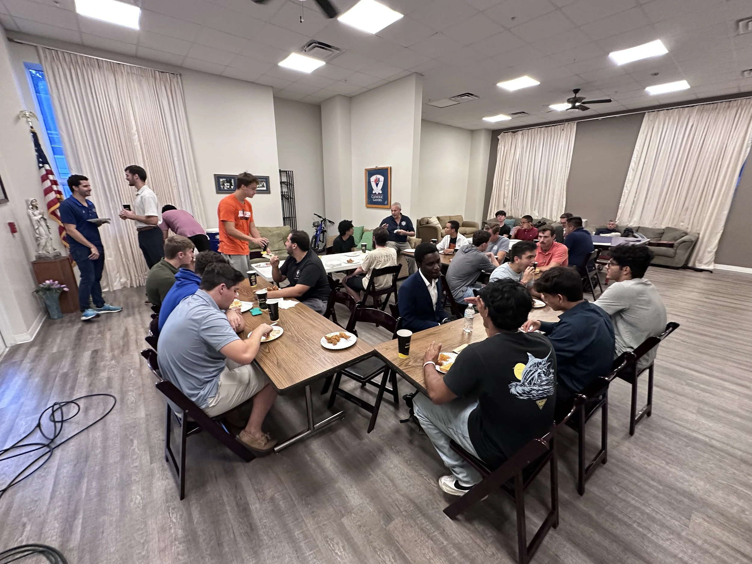The team from the Miami Chapter traveled to Gainesville, Florida, this past Monday, September 29th, for the first meeting with the men's group of the Catholic Gators ministry at the University of Florida. Andres Manrara, Gerry Portela, Jay Velasco, and Gerry Fernandez were joined by Congregante Ernie Leon. They met with approximately 30 men for an instruction on the principle and foundation of Ignatian Spirituality. The following morning, the group hosted some of the students for breakfast. The apostolate has been granted permission by Fr. Blair Gaynes, the pastor, to proceed with establishing an official aspirantado and increasing the frequency of meetings to twice a month.