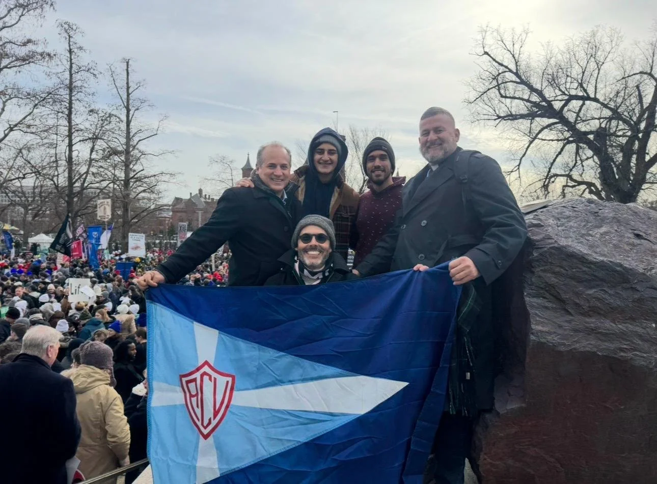 SI por la Vida dice la ACU en Washington, D.C. Este fin de semana, nuestro director, el P. Jorge Luis Rojas, S.J., y un grupo de Agrupados desafiaron el frío del noreste de Washington D.C. para asistir a la Marcha por la Vida anual. El congregante Alex Navarro, presidente del Capítulo de D.C., recibió al P. Rojas, a los congregantes Luis Sánchez y William Cueto, al aspirante Luis Pomareda y al postulante Maroun Issa de Miami. El viaje fue organizado por el congregante Luis Sánchez, instructor del aspirante de la UM. El evento comenzó con la Guardia semanal de los jueves por la noche en la residencia de la ACU en D.C., donde el P. Rojas celebró la misa.