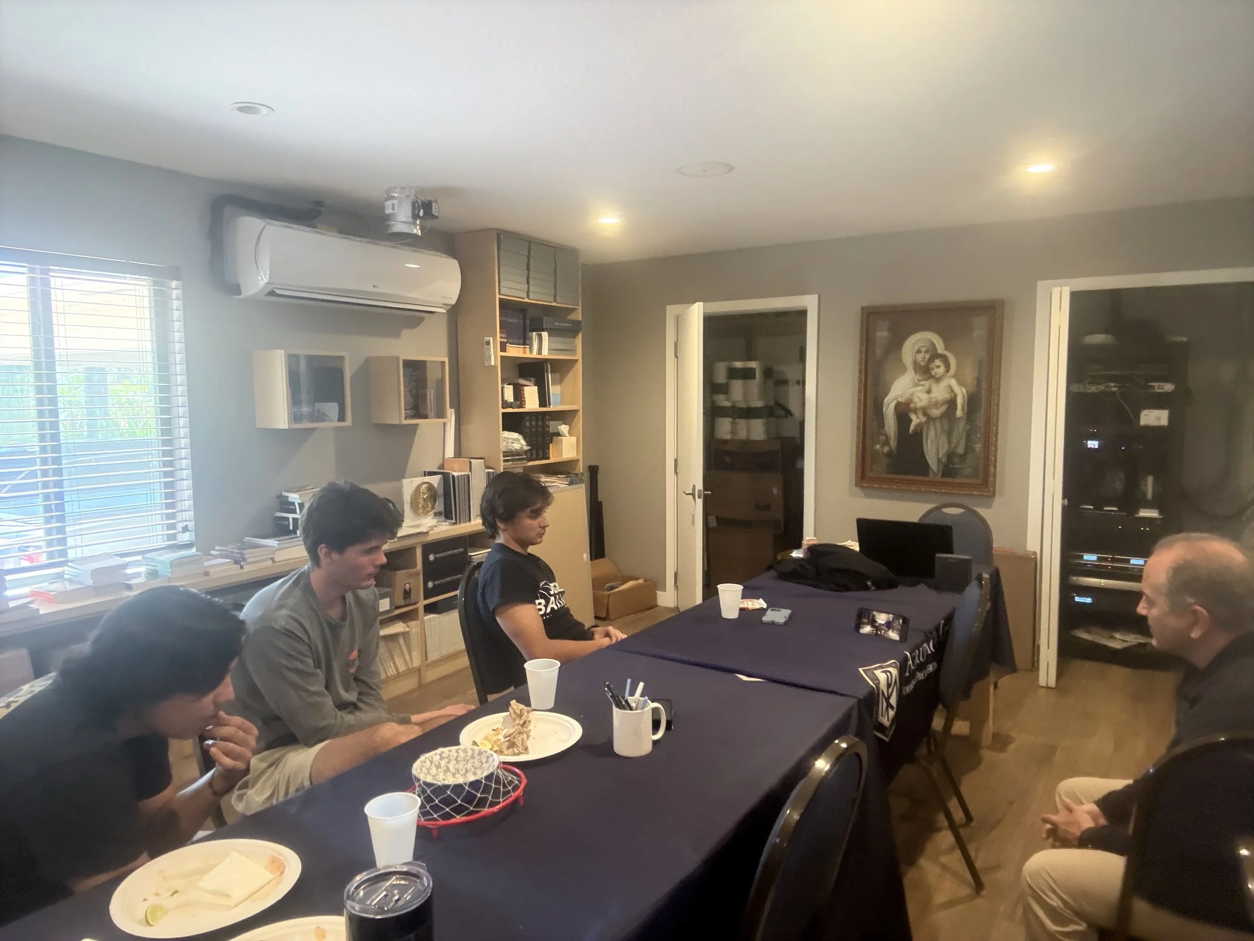 El pasado lunes 23 de marzo de 2026, el grupo de aspirantes de la FIU se reunió en el campus de Miami para su encuentro formativo bimensual, dirigido por el Congregante William Cueto. El grupo continuó su estudio de «Inquebrantable», un libro del Padre Michael Schmitz que aborda el cultivo de la virtud en el mundo actual. Las virtudes tratadas en esta reunión fueron la obediencia, la perseverancia, la amistad virtuosa y la magnanimidad. La charla también incluyó una entrevista con Michael Iskander de la aplicación Hallowed. Michael Iskander es el actor principal de la serie de televisión «La Casa de David» e interpreta al Rey David. Es un converso al catolicismo. El grupo también utiliza el catecismo para complementar las enseñanzas del libro.
