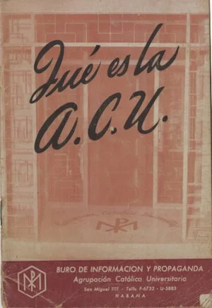 Folleto elemental, uno de más de 50 publicados por el Buró de Información y Propaganda de la ACU sobre historia, dogma, apologética y moral, reconocidos por el Secretario de la Santa Congregación del Concilio. Crecimiento destacado en la Isla y distribución internacional. Escrito por José Ignacio Lasaga Travieso, distinguido congregante, políglota y poseedor de múltiples doctorados, primer presidente de la Federación Mundial de Congregaciones Marianas.